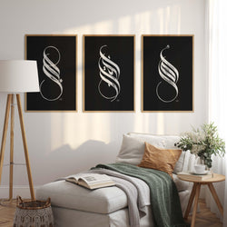 Handmade Calligraphy, Iqra, Amal, Sabr White on Black | 3 Large